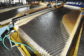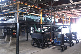 The wet separation plant is equipped with Cross Flow Separators from Eriez, USA, Spiral Gravity Concentrators from Mineral Technologies [MD], Australia & Wet Table from Holman, UK. The feed material is processed in a Cross Flow separator to remove the slurry and other contaminants, the heavy minerals are separated from the silica in the Spiral Gravity concentrators and in the wet table.